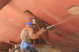 利用高速砂流的沖擊作用清理和粗化基體表面的過(guò)程。采用壓縮空氣為動(dòng)力,以形成高速?lài)娚涫鴮娏希ㄌ蓟?,剛玉,石榴石,銅礦砂、石英砂、鐵砂、海南砂)高速?lài)娚涞叫枰幚淼墓ぜ砻?,使工件表面的外表面的外表或形狀發(fā)生變化,由于磨料對工件表面的沖擊和切削作用,使工件的表面獲得一定的清潔度和不同的粗糙度,使工件表面的機械性能得到改善,因此提高了工件的抗疲勞性,增加了它和涂層之間的附著(zhù)力,延長(cháng)了涂膜的耐久性,也有利于涂料的流平和裝飾。